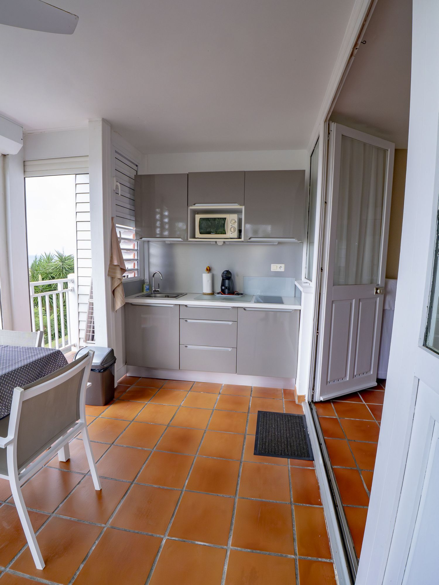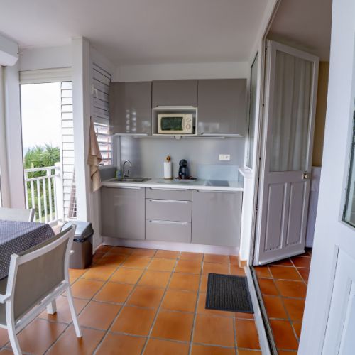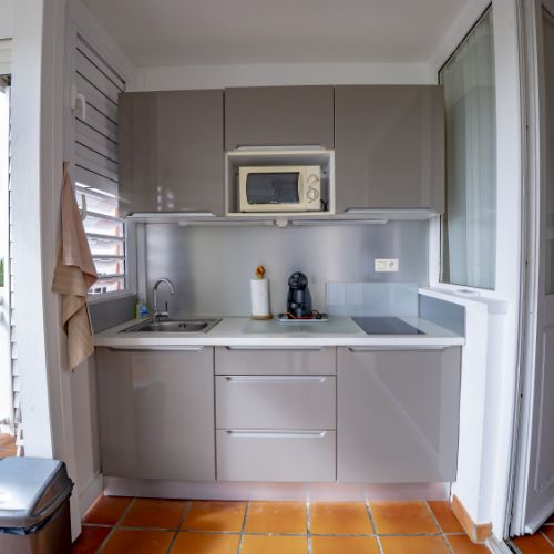 • Cuisine équipée sur terrasse privative (plaques à induction, frigo avec congélateur)